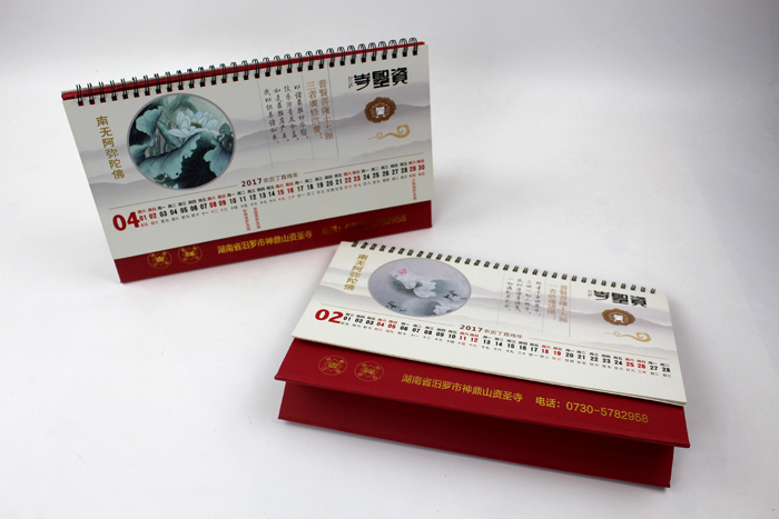 几日前,长沙印刷厂日大彩印为汩罗市黄柏镇神鼎山资圣寺印制的2017年台历也按时出货了,资圣寺在我们厂定制新年台历已有多个年头了。进入12月份,台历挂历定制也日趋火热起业,长沙印刷厂已经为多家客户印制了今年的新台历挂历。