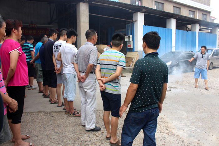 按照演练议程,员工们集中到厂区外坪子里,首先由厂长陈建青为大家讲解公司组织消防演练的重要性,着重讲到当火灾发生时,我们怎样迅速逃生的方法要领常识等。