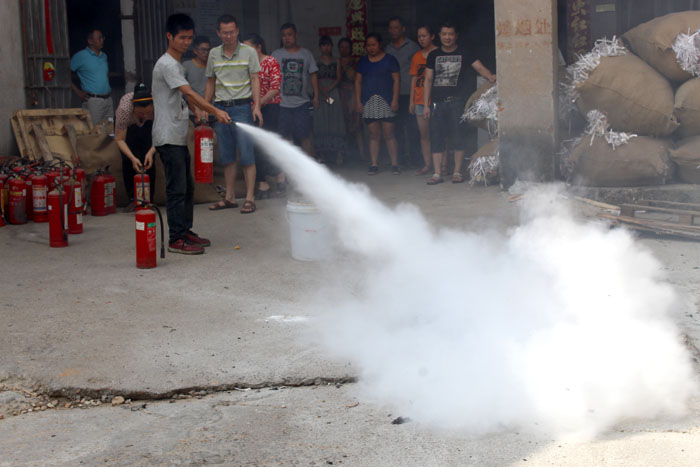 接着,由本公司安全生产组长徐岳成徐总为大家讲述并示范灭火器的操作要领,然后让每一位员工亲自动手操作灭火器。