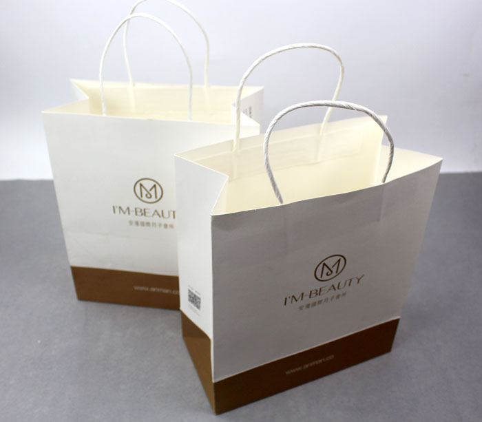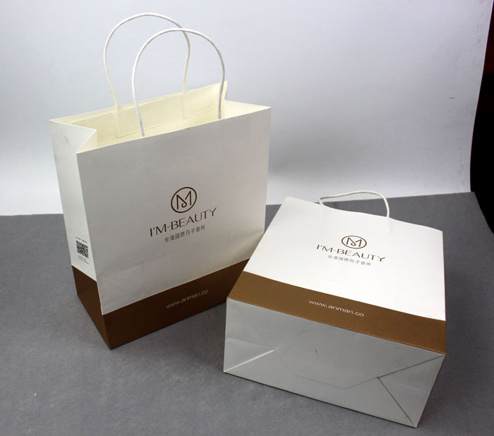 不错,这就是我们长沙彩印厂日大彩印为其精心制作的手提袋,在300克白卡纸上套印着大大的金色LOGO,这种简洁明快的设计风格,让手提袋提在手上不失端庄大气。对安漫国际月子会所品牌形象是一个完美的展示。
