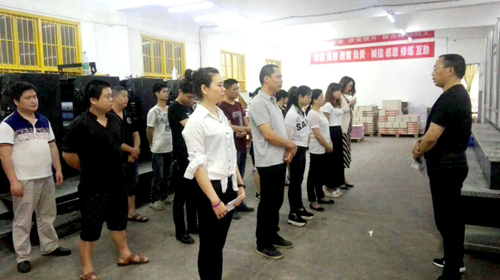今天是2017年5月22日,星期一,又是公司的早会时间,今天的早会是由公司设计师马干主持。长沙印刷厂万彩网日大彩印一直坚持每周一召集公司全体职员举行早会,一方面对员工进行主题教育分享,另一方面对前一阶段工作进行分析总结,找出问题,同时并布置下一阶工作重点,这样让大家做到心中有数,做好产品,服务好客户。